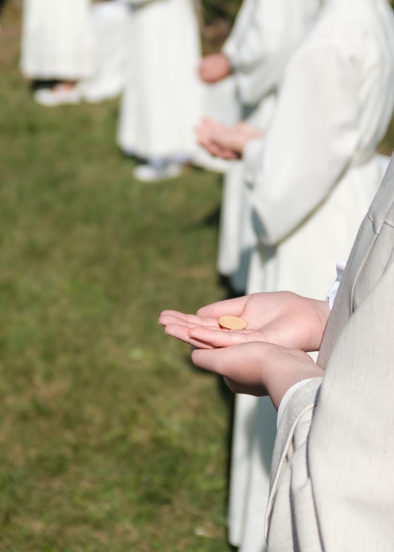 Bei der Erstkommunion empfangen die Getauften zum ersten Mal das Sakrament der Eucharistie, sie empfangen zum ersten Mal den "Leib Christi" in der Gestalt des Brotes. Damit sind sie Teil der "Communio", der Tischgemeinschaft. Die Eucharistie gehört - zusammen mit Taufe und Firmung - zu den Sakramenten der Aufnahme in die Kirche.